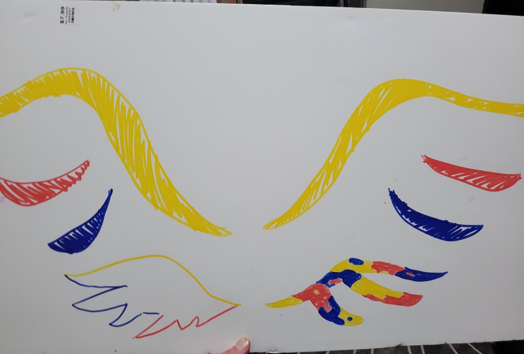 Recently I set up a communal artboard which anyone could draw or write on, with some rules. I was inspired by an artist I saw at an art fair who set up a canvas and let people paint on it with markers. I noticed how the piece got passerbys excited to do art and participate in a community event. I wanted to recreate these feelings in, and share the joy of artistry with those who have fewer means than me.